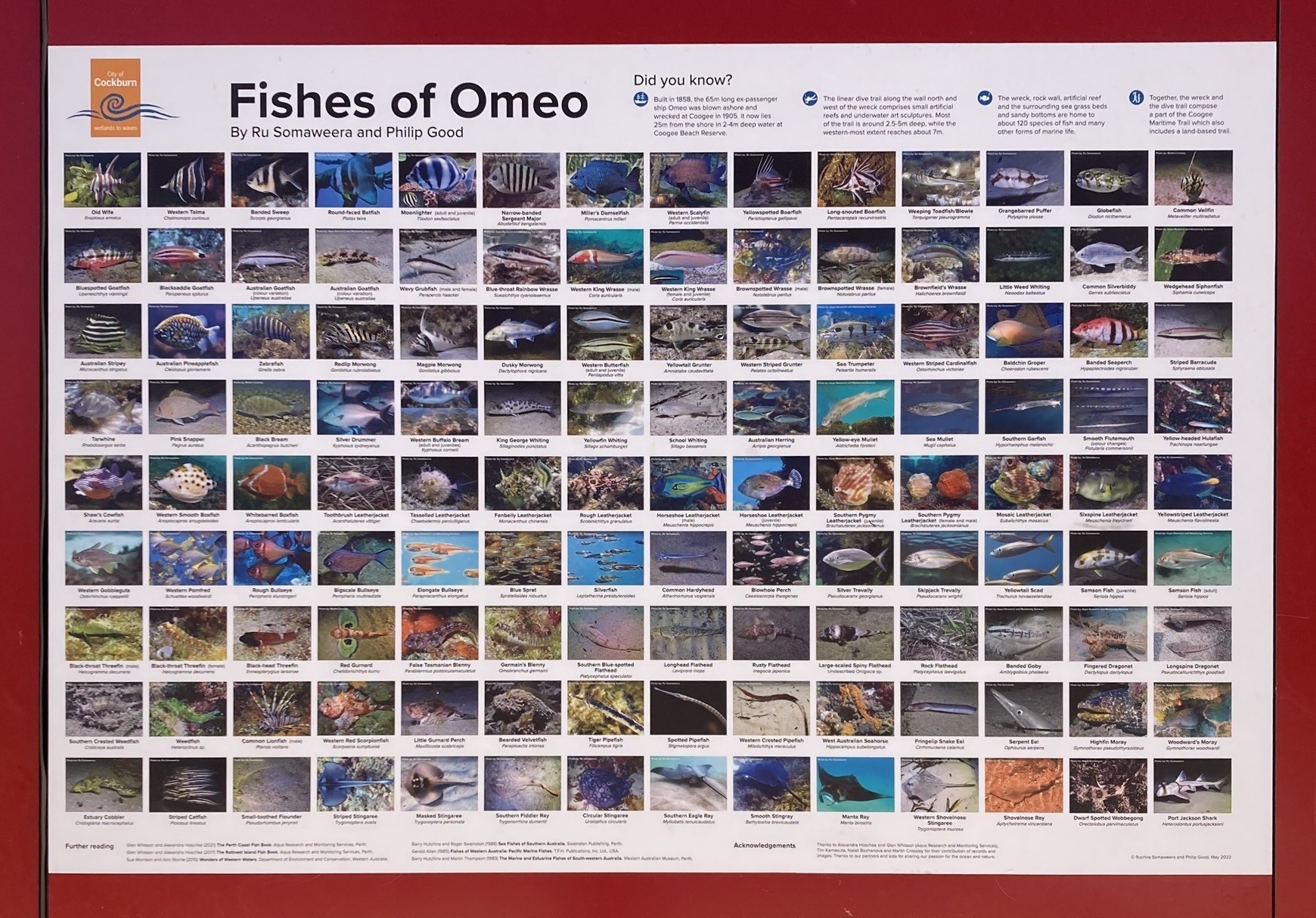 This wall of fishes is located at Omeo Shipwreck on the Coogee Maritime Trail in North Coogee, WA.